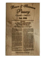 Wood burning or laser engraving on wood is a great way to provide a rustic, one of a kind look. Due to different wood grains and styles, laser engravings come out different on each item. This creates a unique look that most of our customers love.