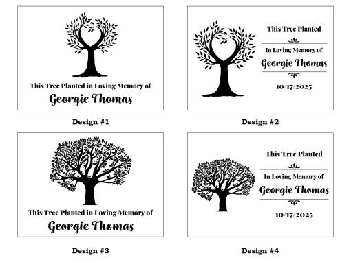 Our Artistic Tree Memorial Plaque includes a beautifully artistic rendering of a tree along with your personalization. With over 12 designs to choose from, you’re sure to find the perfect tree sign for your needs. These signs are popular for dedications, memorials and final resting places for loved ones. All cast plaques come with either screw mount or stake mount options. If you have any questions about this product, please reach out to us.