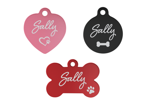 Order one of our high-quality anodized aluminum pet tags.  Each tag is laser engraved, with personalization included on the front and the back of each tag.  A sturdy stainless steel split ring is included with each tag.